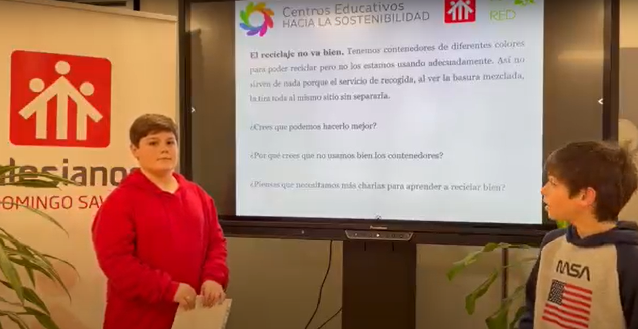 La primera parte tuvo lugar en las diferentes aulas donde se proyectó el trabajo realizado por lo alumnos a lo largo del curso. Durante la emisión de este vídeo cada alumno en una cuartilla proponía sus propias soluciones para mejorar los problemas de ruidos y de residuos que se encontraron en el Centro.
